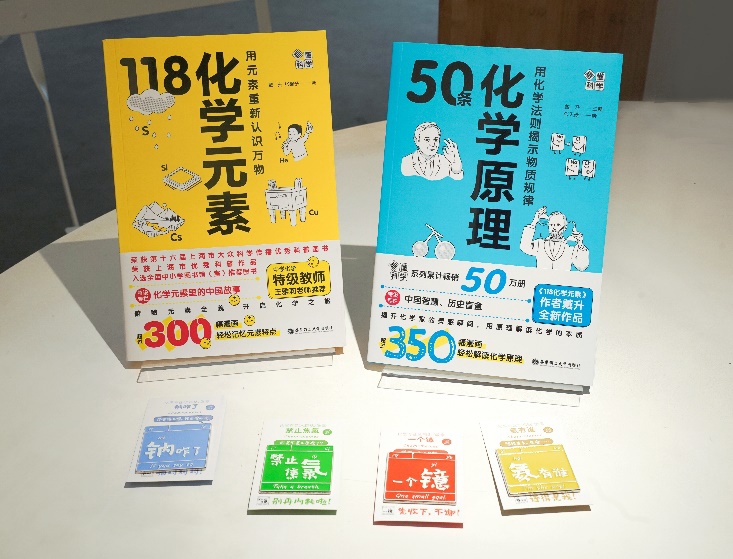 他“玩梗”还玩上了“化里有话”冰箱贴等文创产品,将青少年中流行的谐音梗与化学元素相结合,小读者们见了爆笑出声:“禁止焦氯”“氦有谁”“一个镱”“钠咋了”……
